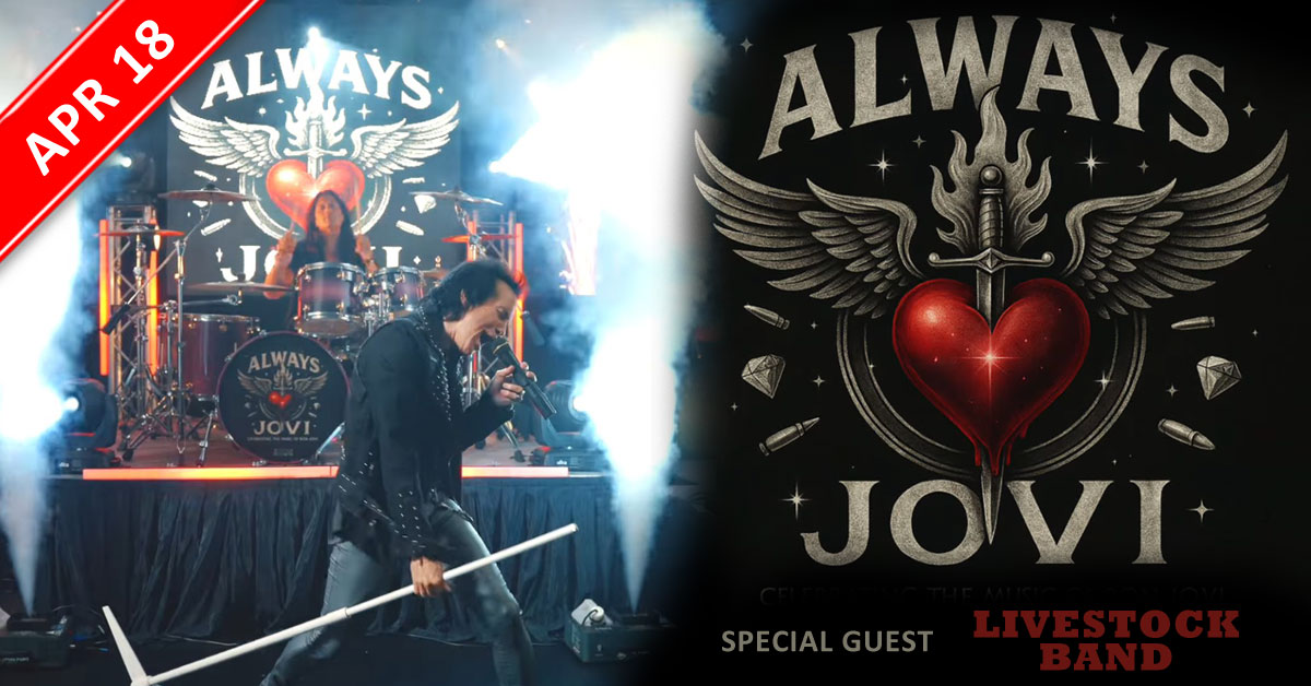 ALWAYS JOVI is a tribute like no other, featuring million-selling New Jersey rock legend Steve Brown — known for his work with TRIXTER, DEF LEPPARD and Ace Frehley. With his powerhouse vocal delivery, electrifying stage presence and deep-rooted connection to the Jersey rock scene, Brown leads this all-star lineup in delivering the timeless hits that defined a generation.